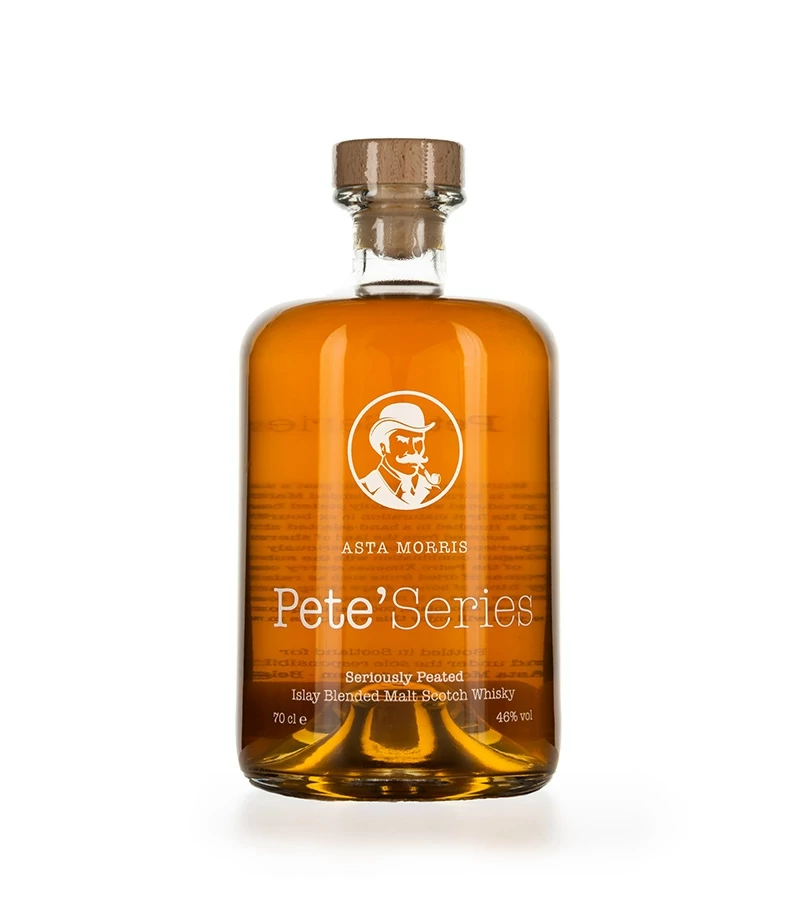 Az Asta Morris belga független palackozó nemcsak kiváló single cask single malt palackozásokkal örvendeztet meg minket, hanem kevert malátawhiskykkel, rumokkal, saját ginnel is. Ezeknek a különlegesebb, kísérletező palackozásoknak eklatáns példája ez a címkéje szerint blended malt whisky, amely gerincét egy Islay-malt adja. Első töltésű bourbonhordós érlelése után Pedro Ximenez sherryhordóban finiselték, azaz utóérlelték.
