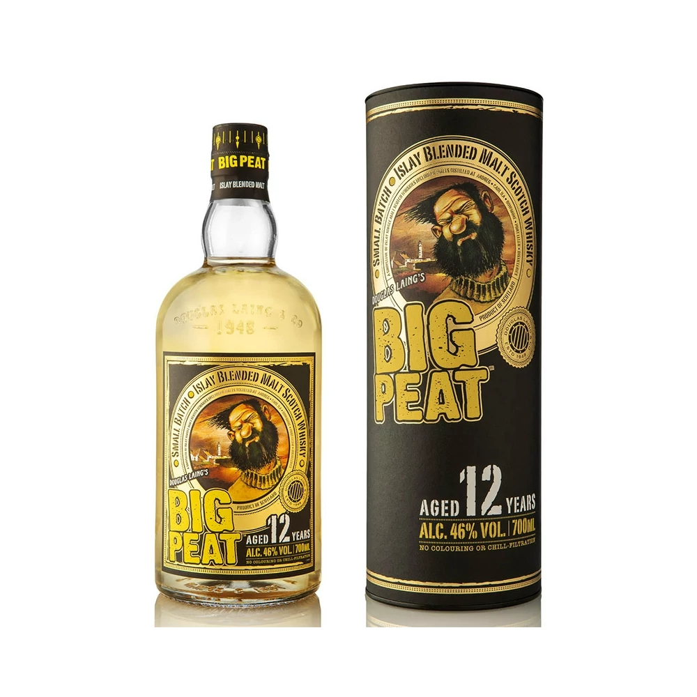 A Big Peat egy ún. blended malt, vagyis különböző lepárlókból származó malátawhiskyk házasításával készülő kevert whisky. A Big Peat, ahogy a neve is elárulja a füstös ízek kedvelőinek készült. A tőzeges whiskyről híres Islay sziget négy lepárlója szolgáltatja alapanyagát: Ardbeg, Caol Ila, Bowmore és Port Ellen. Mivel a Port Ellen már nem működik (egy-egy palack ára kb. 200 ezer forinttól kezdődik), ezért a Big Peat egy tényleg különleges blended malt whisky. Tehát ez a 12 éves kiadás is a négy Islay-lepárló italaiból lett kikeverve, mindegyik alapwhisky legalább 12 évig érlelődött az ikonikus szigeten. A kissé szenes, tőzegfüstös karakter, amely a jellegzetes, tengeri sós levegőt is magában rejti egy klasszikus, mégis különleges islay-szigeti kalandozásra hív. Nem hűtve szűrt.