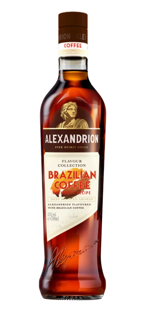 Az  Alexandrion Brazilian Coffee egy különleges ízélmény, amelyben a klasszikus Alexandrion brandy bársonyos alapját a  brazil kávé gazdag, pörkölt aromái teszik még emlékezetesebbé. Ez az ital egyszerre testes és lágy, elegáns és könnyed – a kávé és a brandy harmonikus találkozása egy csipetnyi vaníliával és enyhe édességgel kiegészítve.