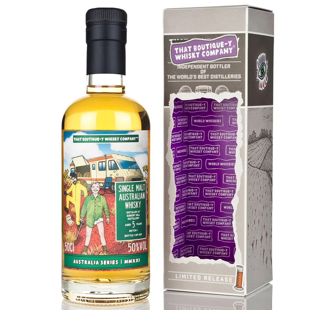 Ausztrál single malt tőzegelt árpamalátából, ex-bourbonhordókban érlelve, a That Boutique-y Whisky Company Australia Series MMXXI sorozatában.