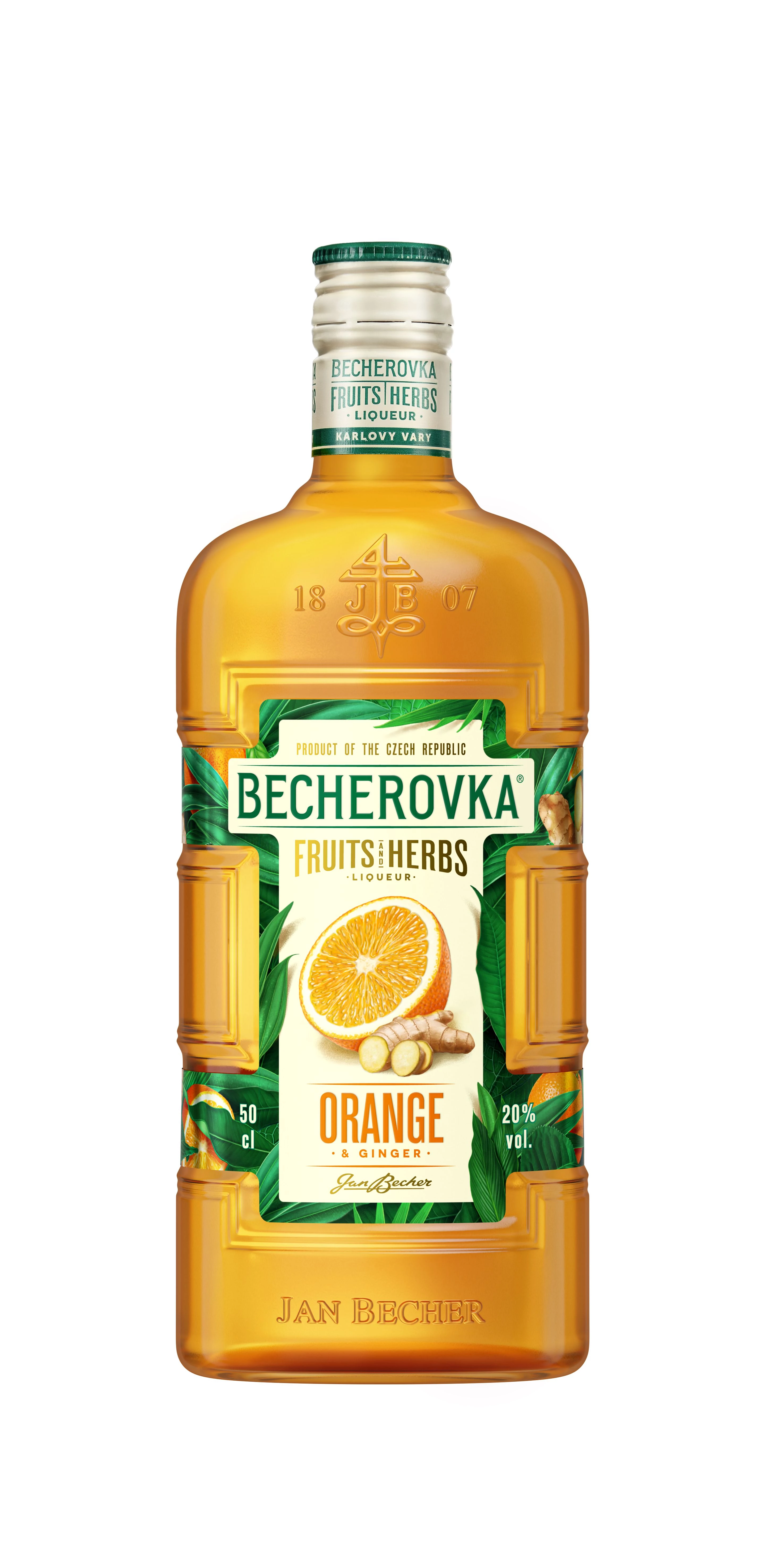 A klasszikus Becherovka palackban, üde, fiatalos megjelenéssel.