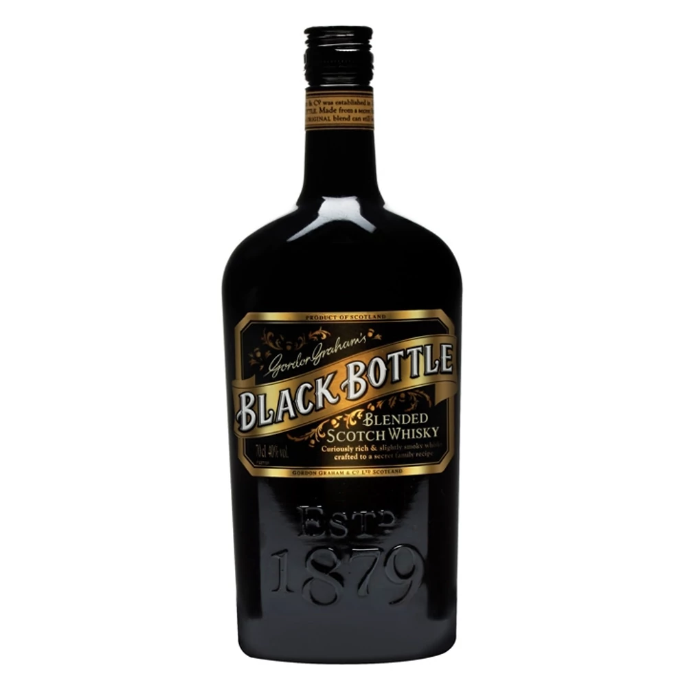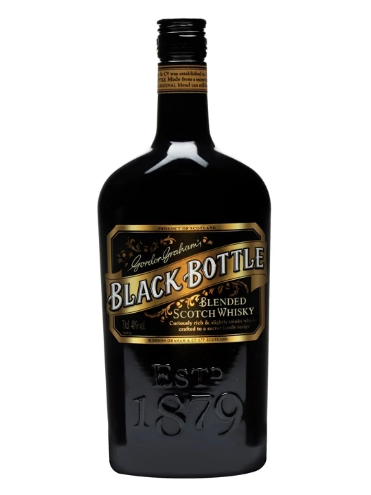 A Black Bottle 1879-ben lett kikeverve és rövid időn belül igen nagy elismerést vívott ki magának, mind a nagyközönség, mind a szakértők körében. Fő alkotóelemei között Islay szigetének összes jelentős maltja szerepel, ezért a tőzeges-füstös ízek kedvelőinek mindenféleképpen nagy élménnyel szolgálhat egy-egy pohárka ebből az ízletes kevertből. A Black Bottle bizonyíték arra, hogy egy tökéletesen kikevert blend az ízek milyen gazdagságát és harmóniáját képes felvonultatni.