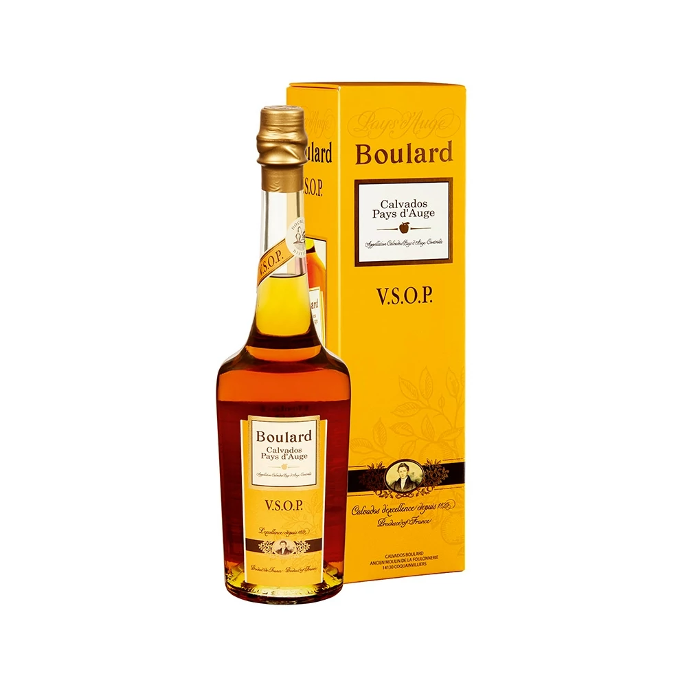 A Boulard Calvados kiváló minőségű valódi almapárlat, amely 120 féle válogatott alma felhasználásával készül. A Normandia szívében található, híres Pays d’Auge régió gyümölcsöseiből származó zamatos almákból kétszeres lepárlással nyerik az üvegbe kerülő nemes párlatot, amelyet aztán tölgyfahordókban 4-tól 10 évig pihenni hagynak. Fogyasztása tisztán, szobahőmérsékleten, vagy long drinkként tonikkal ajánlott.
