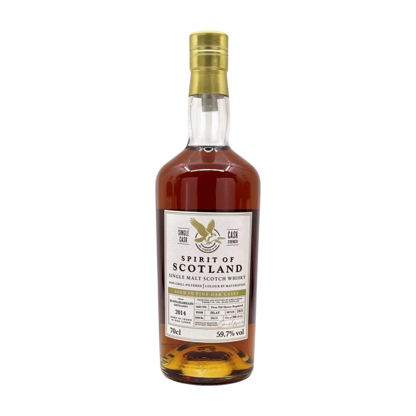 A Cask #2615 hordó tartalmát 2025-ben palackozták 59,7%-os alkoholtartalommal. Ez a cask strength whisky szépen megőrzi a Bunnahabhain stílusát: sűrűbb textúra, gazdag gyümölcsösség, finom malátásság és enyhe tengeri sósság.