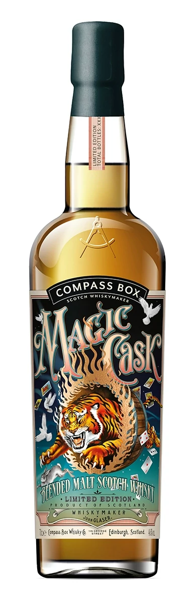 A Compass Box Magic Cask Batch 2 a márka egyik legkifinomultabb, legművészibb házasítása, amely John Glaser kreatív keze nyomát viseli. A Compass Box mindig is a határok feszegetéséről és az ízek közötti harmónia megteremtéséről volt híres – a Magic Cask ennek tökéletes példája.