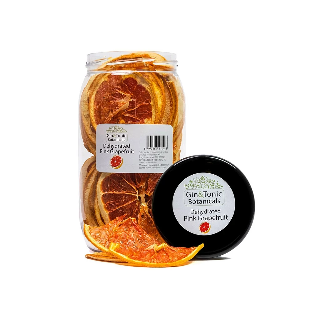 Ha a pink grapefruitról van szó, a ginkészítők legtöbbször az erősen aromatikus héját keresik. Szerencsére különleges, lime-citromos ízét maximálisan kiélvezheted a szárított grapefruit karikáknak köszönhetően. A grapefruit gin tonic fűszer közepes tégelyben is kapható.