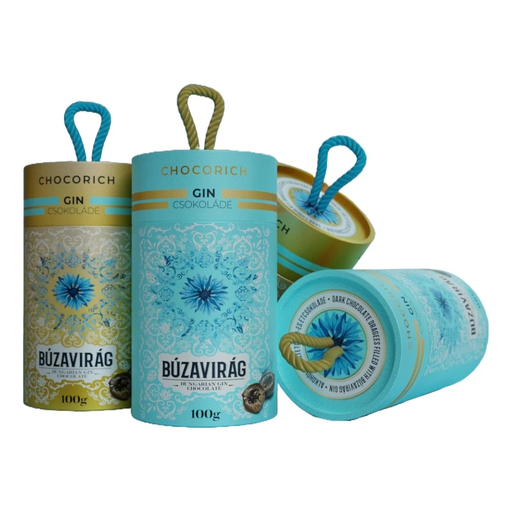 A Búzavirág gin és a CHOCORICH közös terméke, az első magyar ginnel töltött minőségi étcsokoládé-golyó.