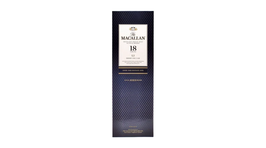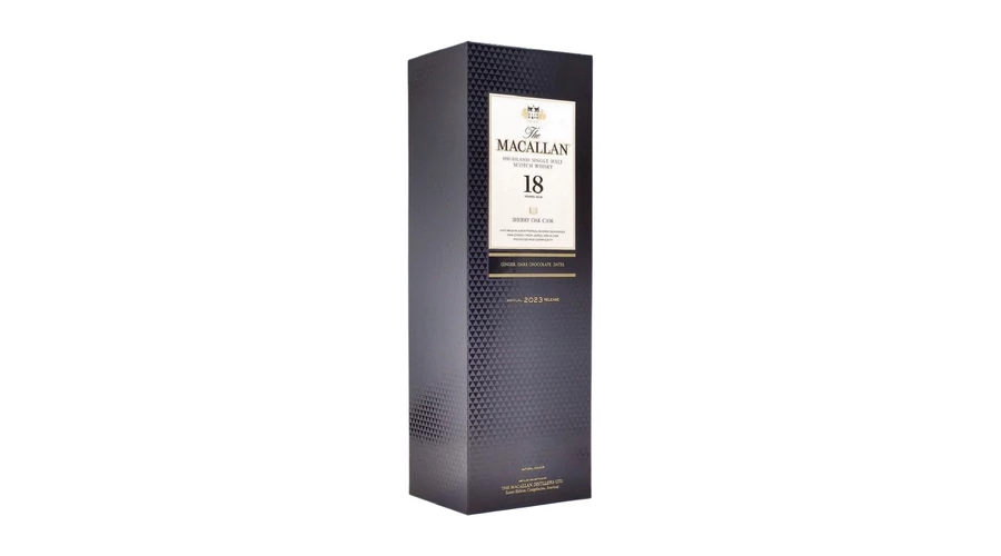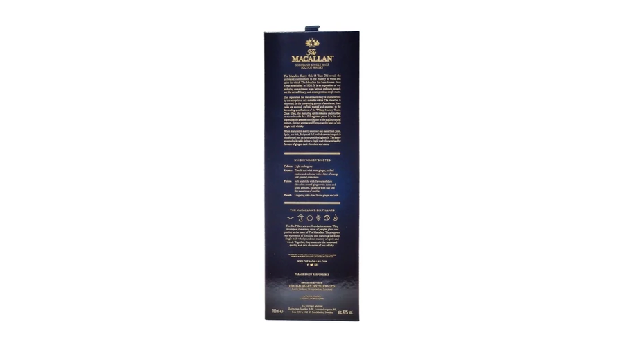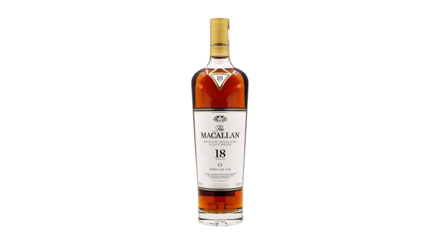 A Macallan 18 éves Sherry Oak a Macallan lepárló mesterműve, amely a sherry érlelés minden szépségét bemutatja. Az exkluzív spanyol tölgyfahordók mély, mahagóni színt és komplex karaktert adnak az italnak.