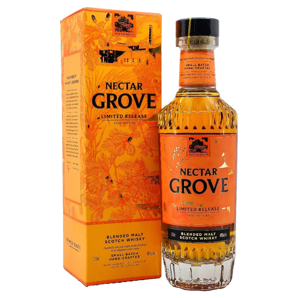 A Nectar Grove Madeira Finish New Batch egy lenyűgöző válogatás, amely a skót whisky és a madeirai boroshordók páratlan kombinációját kínálja. Ezt a whiskyt nagy odafigyeléssel érlelik madeirai boroshordókban, amelyek gazdag, édes jegyekkel és gyümölcsösséggel gazdagítják a már önmagában is komplex ízvilágot. A New Batch karakteres, mély és fűszeres, amelyet a madeirai hordók különleges hatása tesz még kifinomultabbá. A Nectar Grove sorozat új kiadása egyedi és emlékezetes élményt ígér minden whiskykedvelőnek.