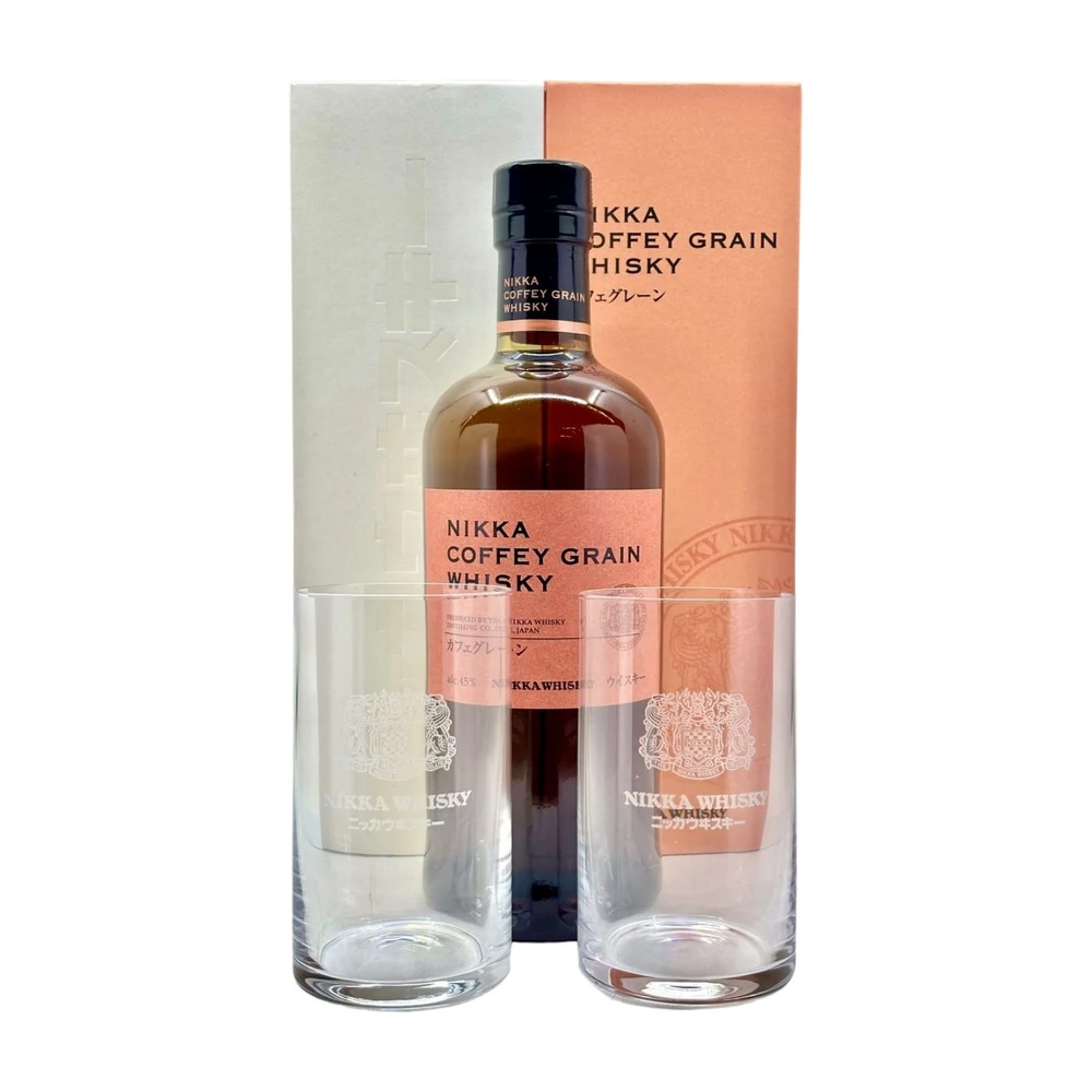 Az ajándékcsomag egy 0,7 literes Coffey Grain palackot és két Nikka highball poharat tartalmaz: tökéletes párosítás azoknak, akik szeretnék otthon is stílusosan megélni a japán whisky élményt.