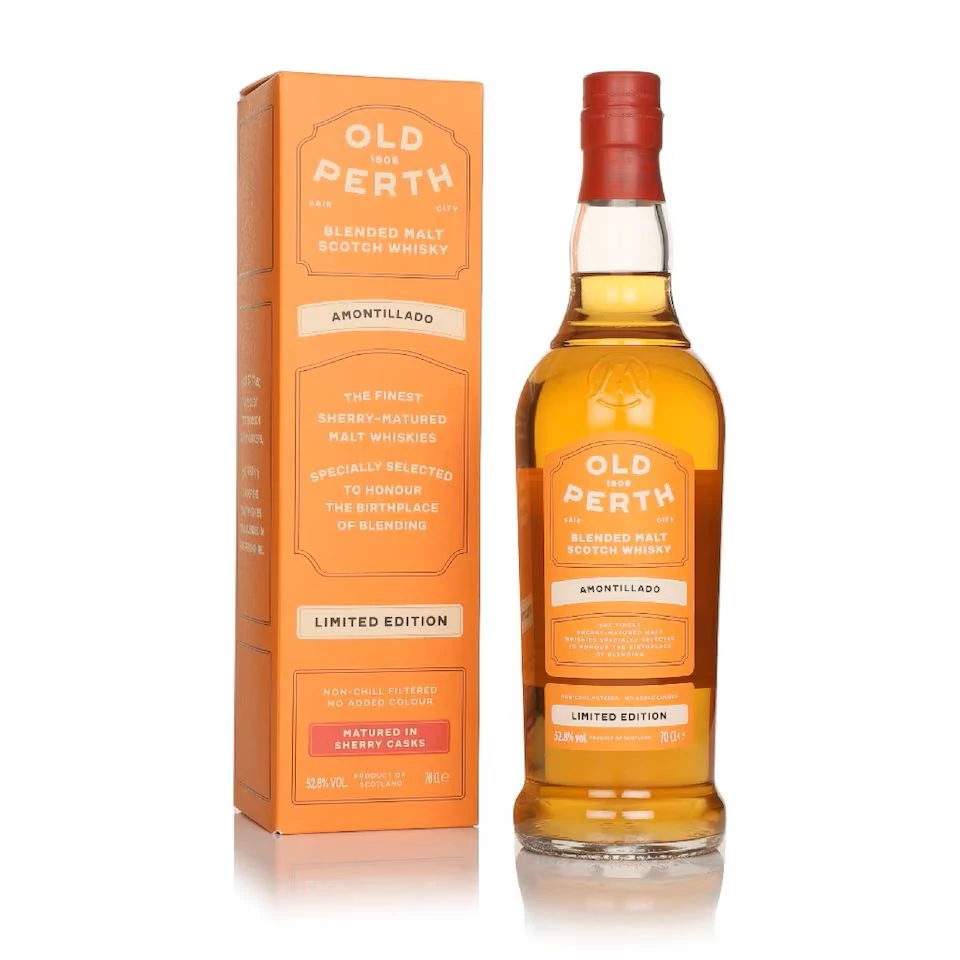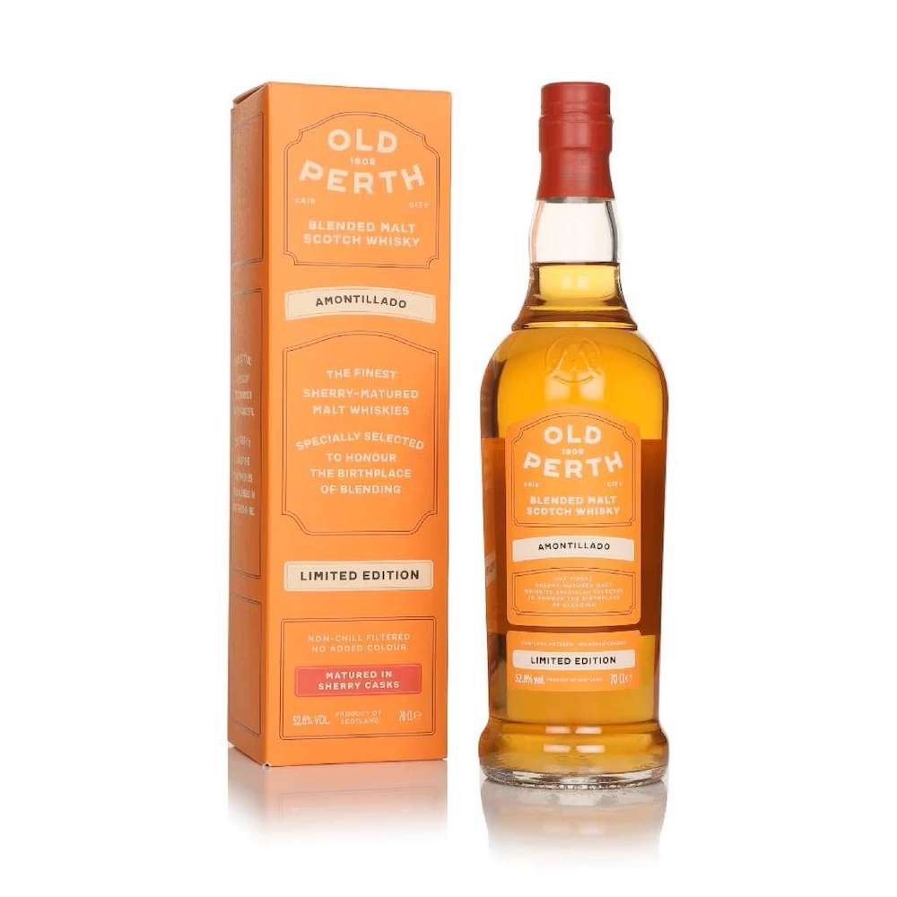 Az Old Perth Amontillado Limited Edition egy skót blended malt whisky, amely Amontillado sherryhordós utóérlelést kapott. Az érlelés markáns diósságot, mandulás jegyeket és aszalt gyümölcsös édességet kölcsönöz az alapwhiskynek. Az 52,8%-os alkoholtartalom megőrzi a textúrát és az ízrétegek komplexitását. Ajánlott önmagában, tisztán vagy néhány csepp víz hozzáadásával fogyasztani, hogy az aromák még inkább felszínre kerüljenek.
