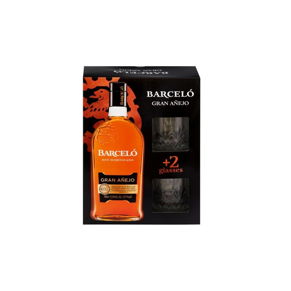 A Barceló Gran Añejo rum a Dominikai Köztársaság egyik legismertebb rummárkájától származik, és a 4 évnyi érlelés során a legfinomabb alapanyagokból készült. A rum sötét, borostyán színű, és a csokoládé, vanília, valamint karamellizált dió jegyei keverednek benne. Az ízpalettán enyhe füstös dohány és ánizs is megjelenik, amit tejszínes, kávés és sütőtökös aromák kísérnek. A közepesen száraz lecsengés és a karamellás, dióval teli utóíz tökéletes zárása a rum gazdag élményének. Különösen jól illik a koktélokhoz, de önállóan is élvezhető, akár jégen is. Az ital egy díszdobozban érkezik két pohárral, így remek választás ajándéknak vagy különleges pillanatokhoz.