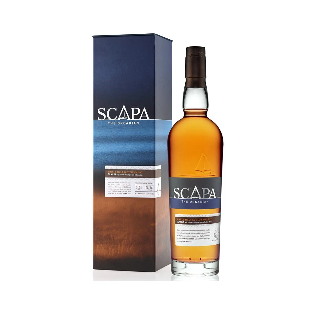 A Glansa whiskyt a Skiren nevű verzióval együtt vezették be a piacra 2016-ban. A Glansa gyengéd példája a tőzegelt whiskyknek, tehát enyhén füstös karakterrel bír. Főként amerikai tölgyfahordóban érlelik, de az érés utolsó részében olyan hordóban pihentetik, amely korábban füstös whisky volt. Skócia északi partjain túl található Orkney szigete valójában 70 kisebb-nagyobb szigetből áll, amik között összesen 9 világítótorony segíti a hajósok tájékozódását. A világítótorony és a tenger a Scapa whiskyk üvegén is feltűnik, mint a szigetvilág szimbólumai. Több mint 120 éve e távoli táj tengeri levegője, az állandóan változó időjárás, mely átjárja a hordók fáját, és az itt élő emberek munkája és odaadása együttesen alkotja azt a csodálatos keveréket, aminek eredménye ez az egyedi ital.