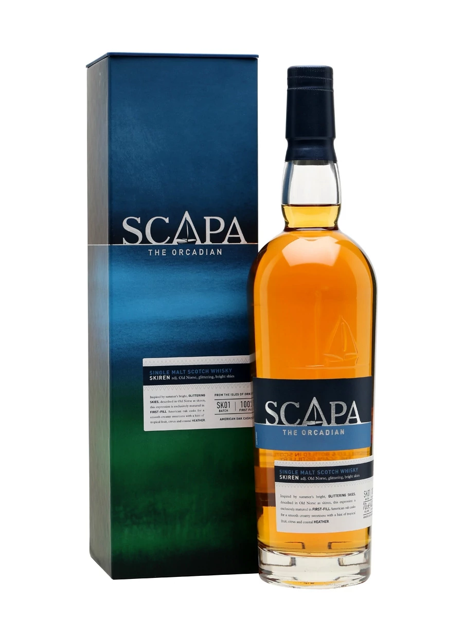 Ez a kellemesen mézes malt Skócia egyetlen, még működő Lomond típusú üstjében (speciális lepárló berendezés, amelyen némi átalakítással több, különböző karakterű párlat is készíthető) lett desztillálva. Első töltésű amerikai tölgyfahordóban érlelték, amely által a vaníliás karakter is jelentős a mézes vonal mellett. A 'Skiren' szó a norvég nyelvből ered és azt jelenti 'csillogó fényes égbolt'. A Skócia északi partjain túl található Orkney szigete, valójában 70 kisebb-nagyobb szigetből áll, amik között összesen 9 világítótorony segíti a hajósok tájékozódását. A világítótorony és a tenger a Scapa whiskyk üvegén is feltűnnek, mint a szigetvilág szimbólumai. Több mint 120 éve, e távoli táj tengeri levegője, az állandóan változó időjárás, mely átjárja a hordók fáját, és az itt élő emberek munkája és odaadása együttesen alkotja azt a csodálatos keveréket, aminek eredménye ez az egyedi ital.
