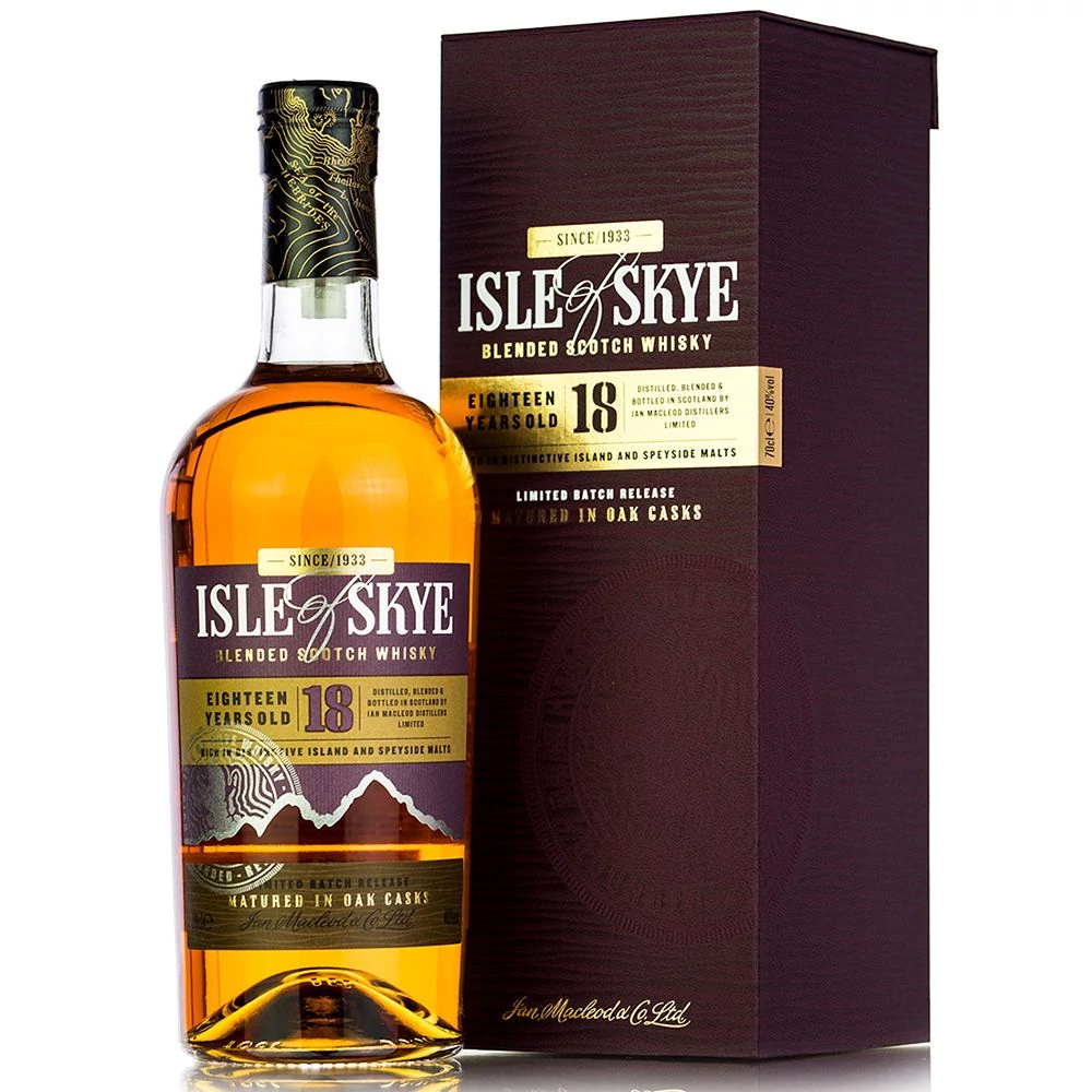 A Isle of Skye 18 éves a skót whiskyvilág klasszikus értékeit képviseli – egy elegáns, összetett blended whisky, amely a Highland és az Island régió legnemesebb maltjait egyesíti. A blend alapját finoman füstös szigetvidéki whiskyk és lágy, gyümölcsös Highland tételek adják, amelyek 18 éven át pihentek gondosan válogatott tölgyfahordókban.