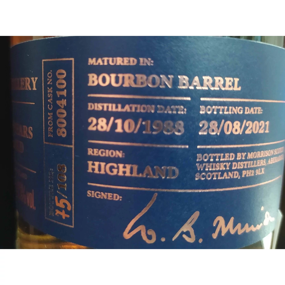 A Morrison Scotch Whisky Distillers független palackozó legexkluzívabb sorozata a Family Reserve, ami a Cárn Mór széria tagja. Csak a legritkább és legjobb hordókból válogatnak. Ez a Glen Garioch 1988.10.28-án került lepárlásra és 2021.08.28-án palackozták hordóerősségen, ami 42,3% maradt a hosszú érlelés során. 108 palack jelent meg belőle.