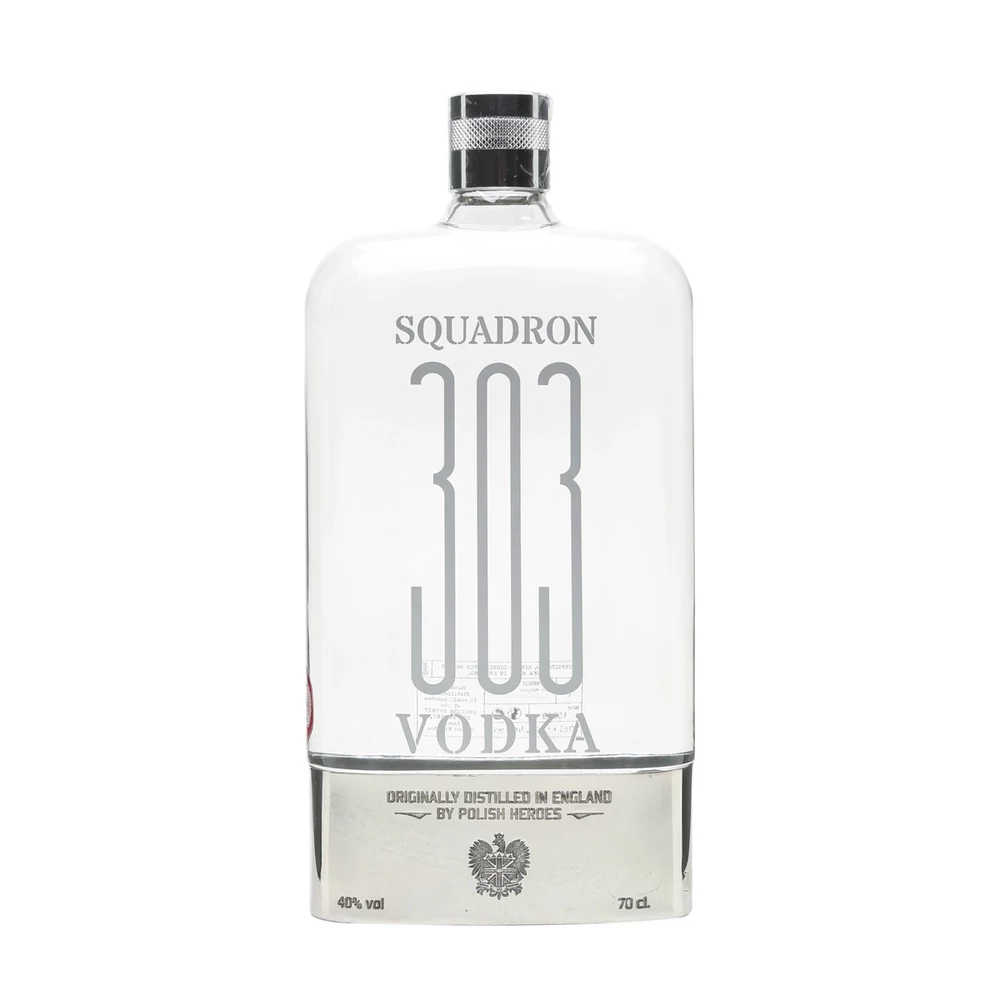 A Squadron 303 Vodka márka alap verzióját, az angol Királyi Légierő pilótainak második világháborúban használt laposüvege ihlette. Angol és francia művészek munkájának gyümölcse, ez a közel 2 kg-os fehér üveg palack, mely fém alsórésszel rendelkezik. Ide a Squadron 303 Vodka mottója van nyomtatva ("Eredetileg Angliában a lengyel hősök által desztillálva"), és krómozott sárgarézből a márka címere is látható. Komoly megjelenés egy komoly italnak.