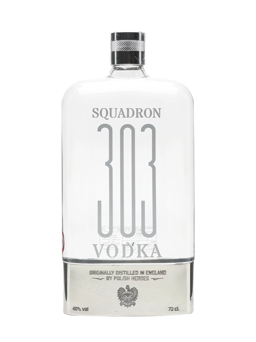 A Squadron 303 Vodka márka alap verzióját, az angol Királyi Légierő pilótainak második világháborúban használt laposüvege ihlette. Angol és francia művészek munkájának gyümölcse, ez a közel 2 kg-os fehér üveg palack, mely fém alsórésszel rendelkezik. Ide a Squadron 303 Vodka mottója van nyomtatva ("Eredetileg Angliában a lengyel hősök által desztillálva"), és krómozott sárgarézből a márka címere is látható. Komoly megjelenés egy komoly italnak.