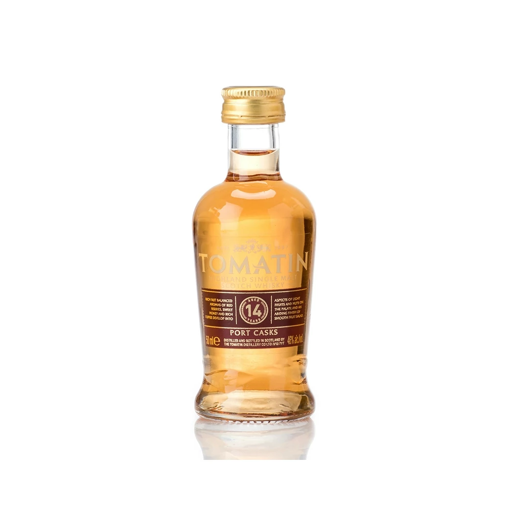 A Tomatin 14 éves verzióját bourbon-, és portóis hordókban érlelik. A tökéletes eredmény érdekében olyan Tawny Port hordókat válogatnak, amelyekben előtte 50 évig érlelték a híres portugál bort. A Tomatin alapvetően könnyű párlatának ez az érlelési eljárás bársonyos simaságot, és kellemes édességet kölcsönöz. Gazdag, ugyanakkor kiegyensúlyozott whisky, piros bogyós, édes-mézes, tejkaramellás jegyekkel, valamint diós és könnyed gyümölcsös hatásokkal a végén.