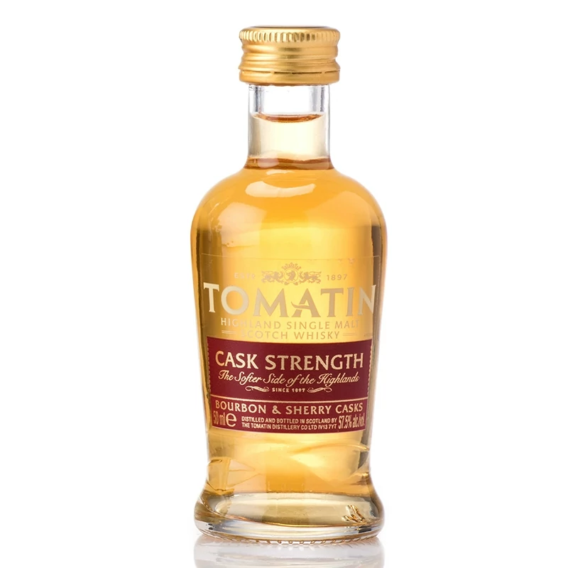 Cask Strength - vagyis hordóerősségű, ami annyit jelent, hogy hígítatlanul kerül a hordóból a palackba a whisky. Ezek a kiadások jóval intenzívebb, gazdagabb élményt tudnak nyújtani, főleg ha pár csepp vizet adunk hozzájuk, ami által az aromák szépen kinyílnak. Ez tehát a legélénkebb Tomatin malt, amelyet első töltésű bourbon- és Oloroso sherryhordókban érlelnek.