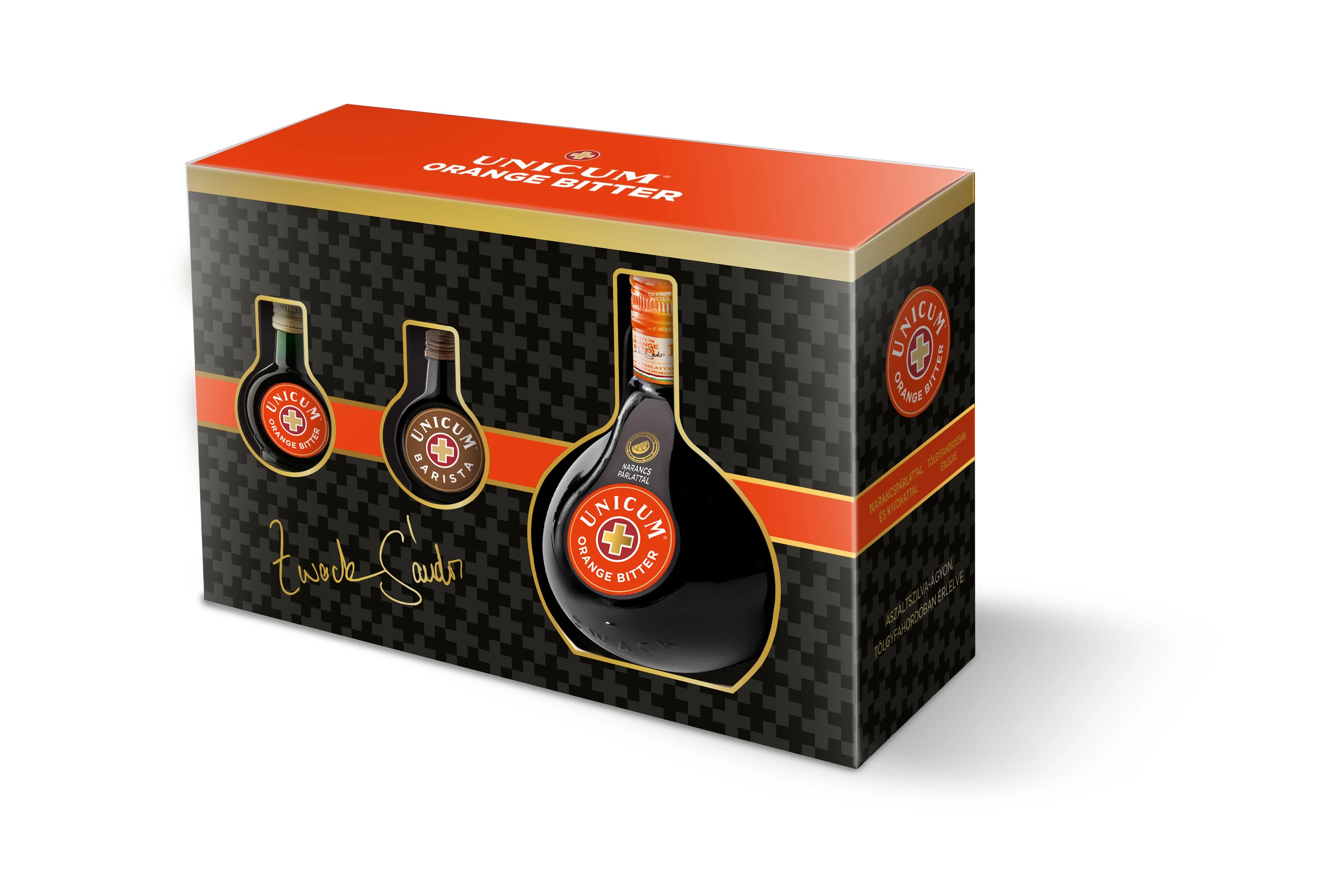 Ebben az ajándékcsomagban a nagy palack mellett két mini kísérő is helyet kapott: egy újabb Orange Bitter a kóstolásokhoz, valamint az Unicum Barista, amely kávés, pörkölt jegyeivel teljesen új dimenziót mutat. Stílusos, modern válogatás azoknak, akik szeretik a különleges, mégis autentikus magyar ízeket.