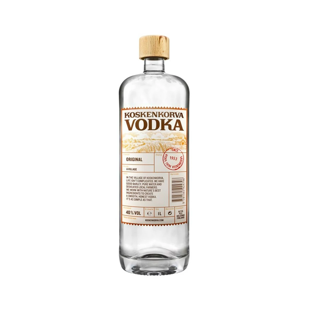 A Koskenkorva vodka 40% egy ikonikus finn vodka, amely a legmagasabb minőségű árpából és kristálytiszta forrásvízből készül. Az ital egyedülálló tisztaságát és lágy ízét a több lépéses desztillációs folyamatnak köszönheti, amely biztosítja, hogy minden cseppje tökéletesen sima és tiszta legyen. A Koskenkorva vodka elkészítése során használt árpát a finn vidék termékeny talaja és tiszta levegője táplálja, míg a forrásvíz közvetlenül a tiszta finn természetből származik, amely biztosítja az ital kivételes minőségét.