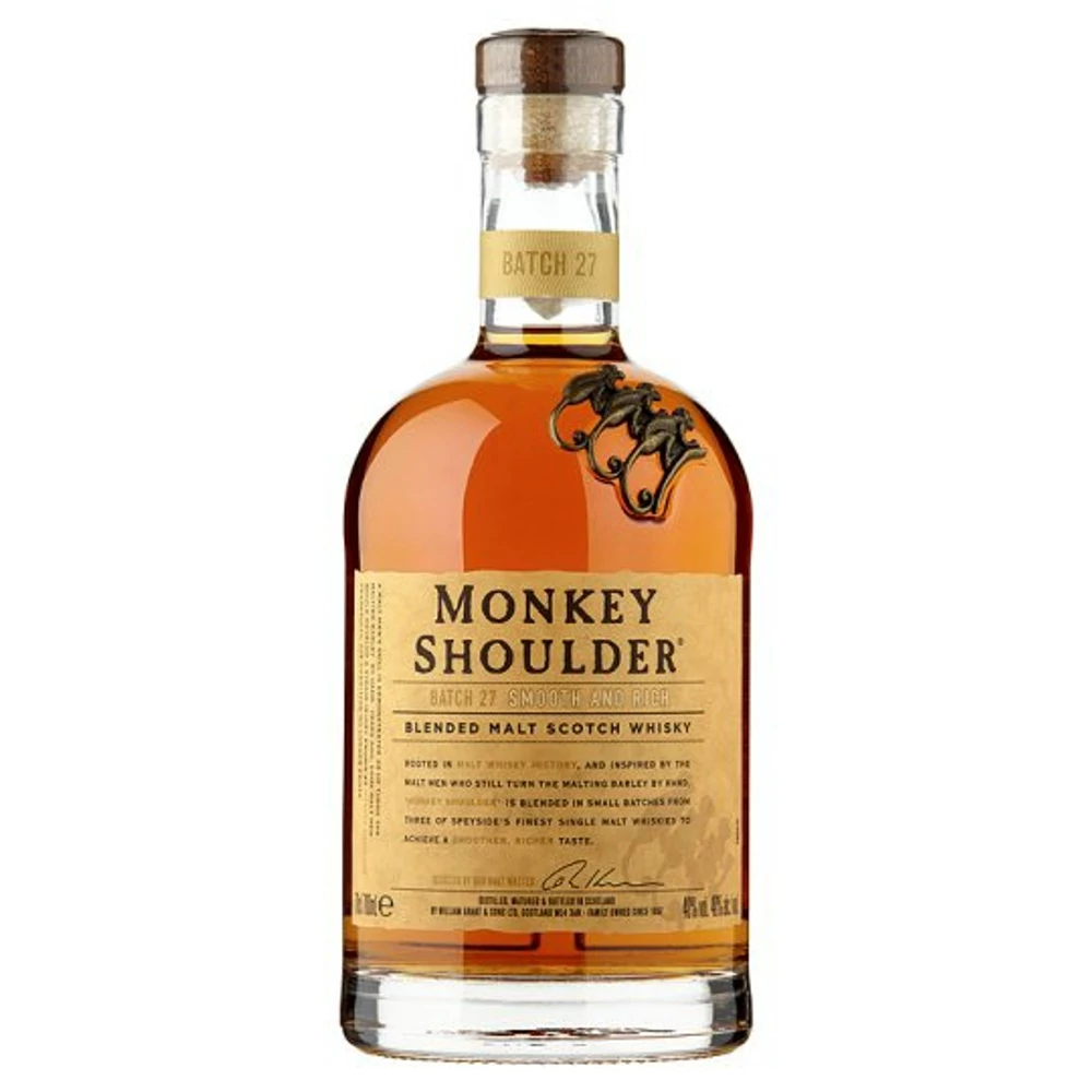 A Monkey Shoulder egy egyedülálló blended malt, amely a Speyside whiskyrégió három híres lepárlójának – Glenfiddich, Balvenie és Kininvie – single maltjait egyesíti. A William Grant & Sons mesterei ezzel a whiskyvel új korszakot teremtettek: egy prémium, fiatalos és sokoldalú whiskyt, amely egyszerre tiszteletadás a hagyományoknak és válasz a modern ízlésre.