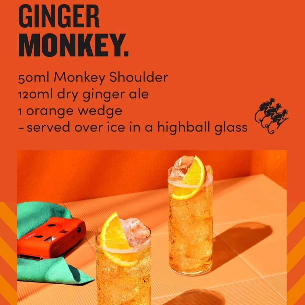 A bourbonhordókban érlelt Monkey Shoulder lágy, krémes textúrával és kellemesen fűszeres, gyümölcsös karakterrel rendelkezik. Ideális választás azoknak, akik felfedeznék a blended malt whiskyk világát – vagy új szintre emelnék a klasszikus koktélokat.