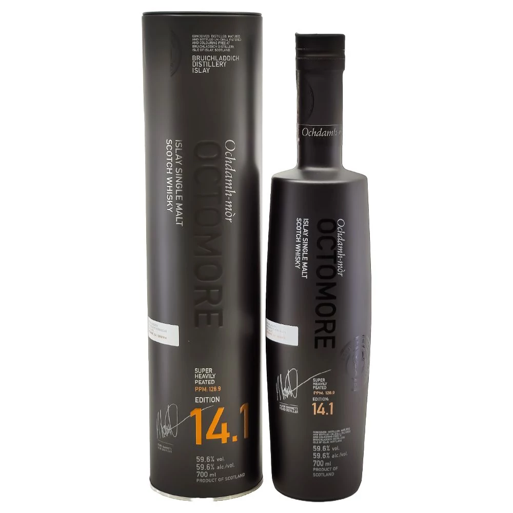 Az Octomore 14.1 egy igazán kivételes tétel, amely intenzíven tőzeges, de annál komplexebb ízvilágú. A híres Bruichladdich lepárló limitált kiadása. A világ legfüstösebb whiskyjeként ismert Octomore sorozat 14-es szériájának első tagja, így a lepárló rajongói tudják, hogy a 100%-ban skót árpamalátából készülő párlat first-fill bourbonhordóban érlelődött 5 évig. Közel hordóerős, hiszen 59,6%-on palackozták. Fenoltartalma 128 PPM.