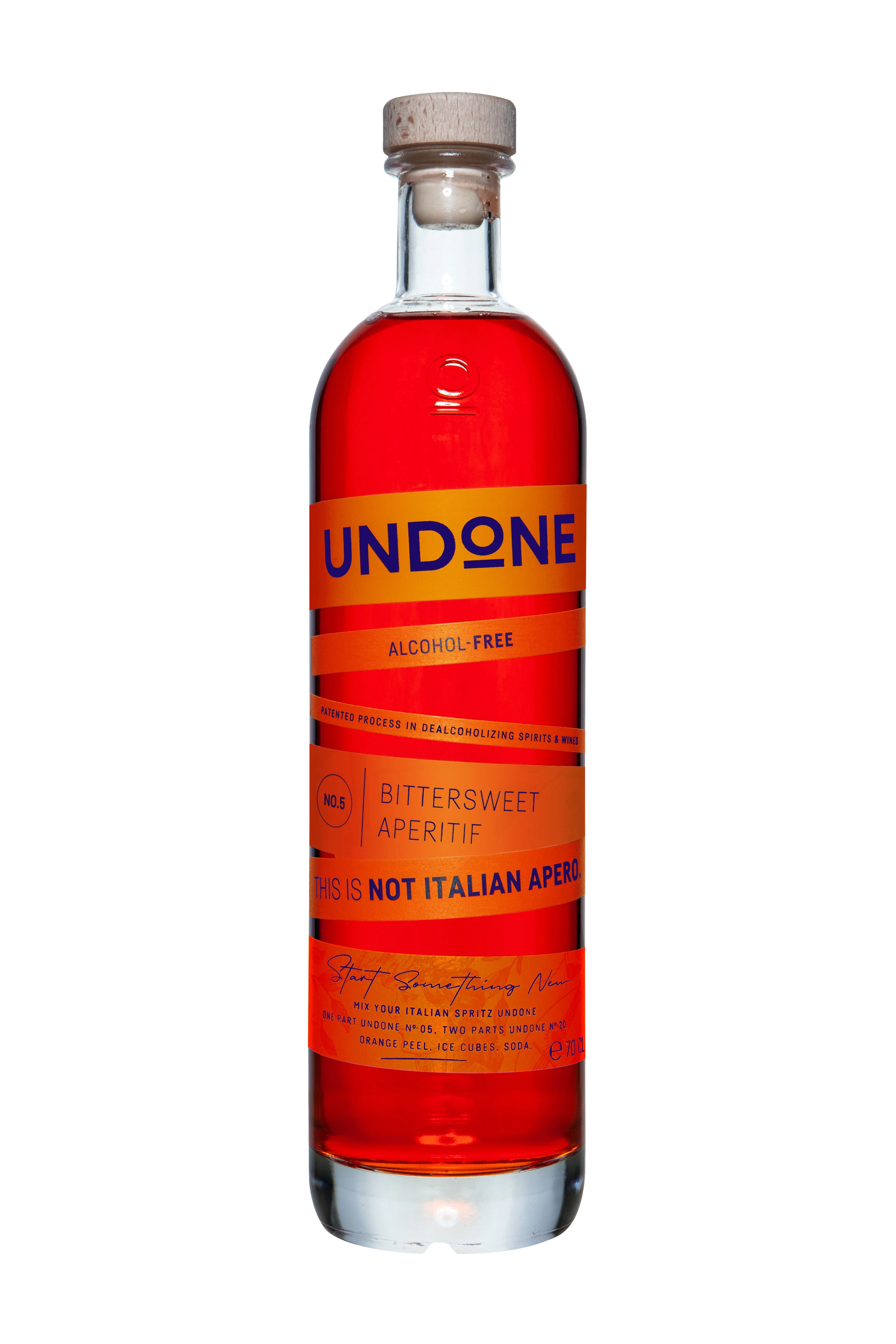 Az Undone No.5 Bittersweet Aperitif a klasszikus vörös aperitifek világát hozza el alkoholmentes formában. Ízvilágát citrusfélék héja, gyógynövények, karamellás jegyek és határozott kesernyésség határozza meg.